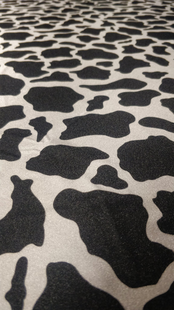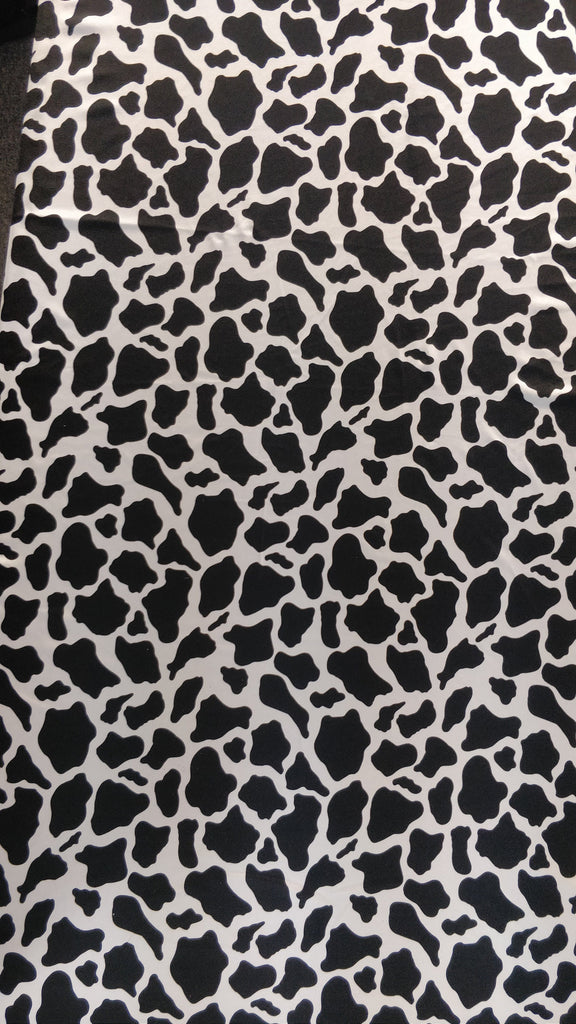 Cow Print on Nylon Spandex Fabric (White/Black) (4 Way Stretch/Per Yard)