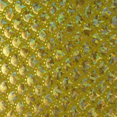 Gold Mermaid Fish Scale on Hologram Foil Spandex w/ Dots Fabric (4 Way Stretch/Per Yard)