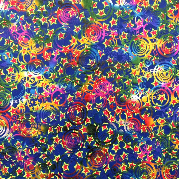 This is a special one off print of our take on a colorful realm of stars world. This print is accompanied with stars on a nice navy blue background. It's a top quality holographic fabric so you won't be disappointed.