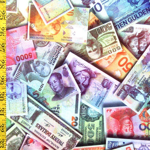This is a special one off print of our international currency print collection in just a holographic print. It's a combination of some world currencies splayed out on top of each other. Our fabric is top notch quality as always!