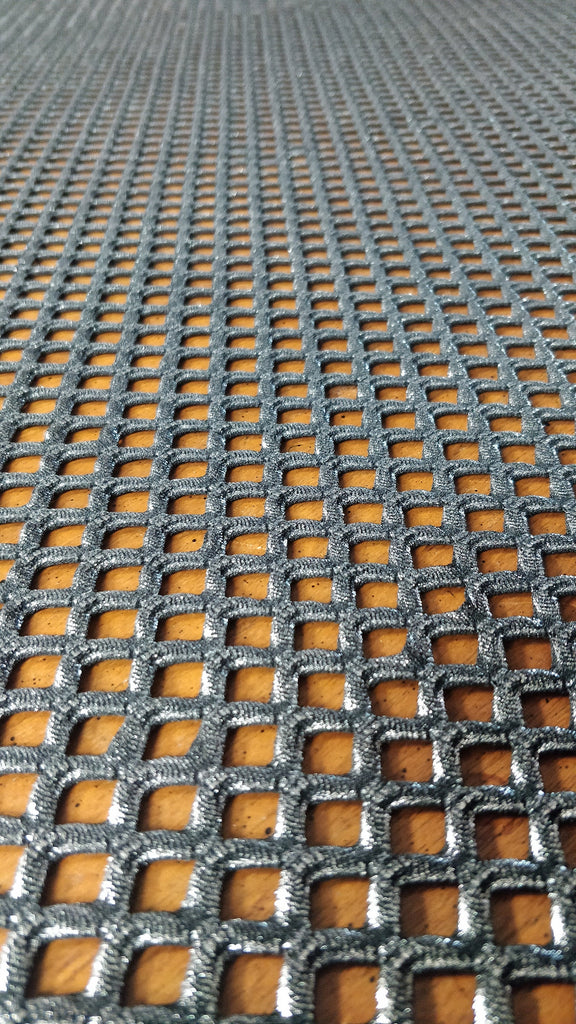 This is a special curated cabaret we made - it has metallic encrusted on the cabaret mesh. Cabaret big hole mesh is a very popular mesh in the industry. The fact that it comes in multiple colors and is very easy to work with in combination with other fabrics makes it perfect. Meshes & sheer fabrics allow the consumers body or undergarments to be visibly seen through its fabric. It has a very appealing modern chic look & it's light for those that are seeking minimal attachments. Our mesh fabrics are thin cloths that show off some transparency. Mesh fabrics have been very popular lately in the contemporary realm. The fashionistas flock to it with heavy avail. It's a personal favorite when it comes to our shoppers.