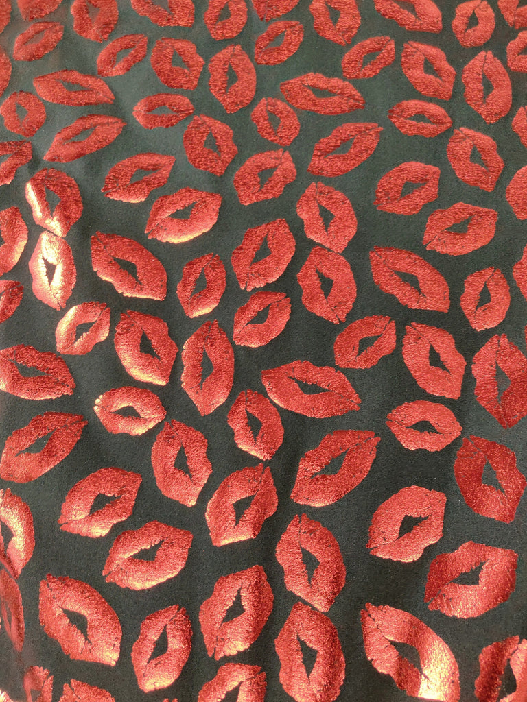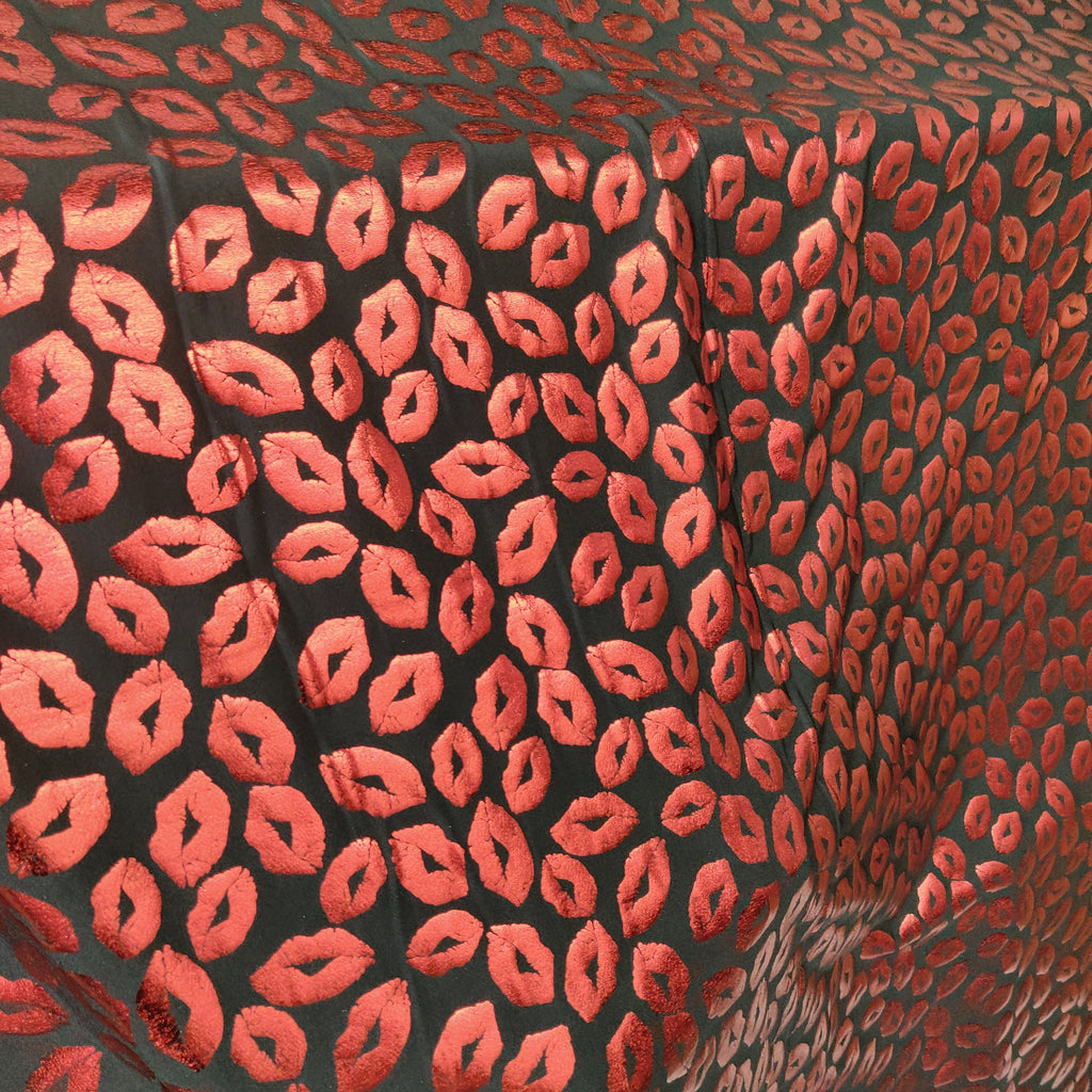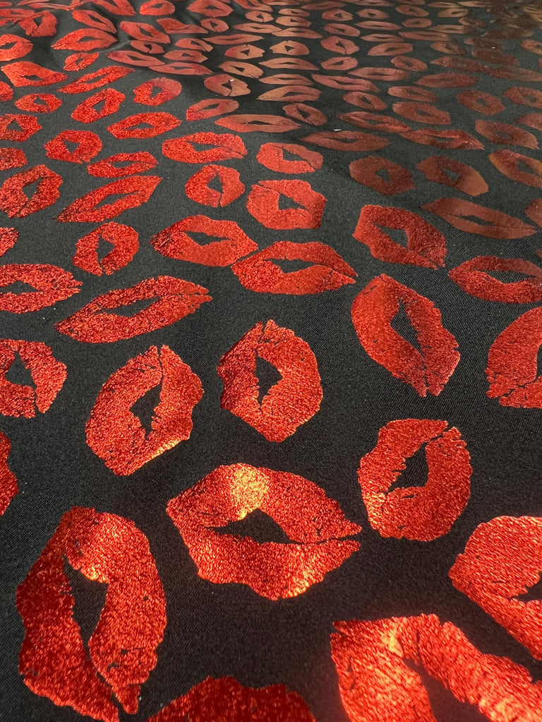 Metallic Foil Lip Print on Poly Spandex Fabric (Red/Black) (4 Way Stretch/Per Yard) **LIMITED**