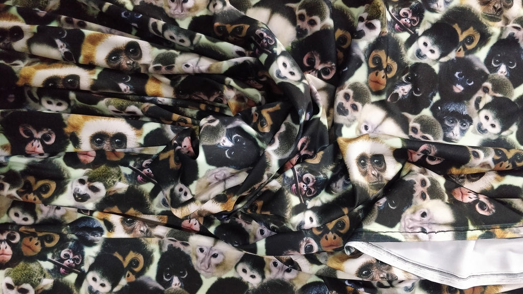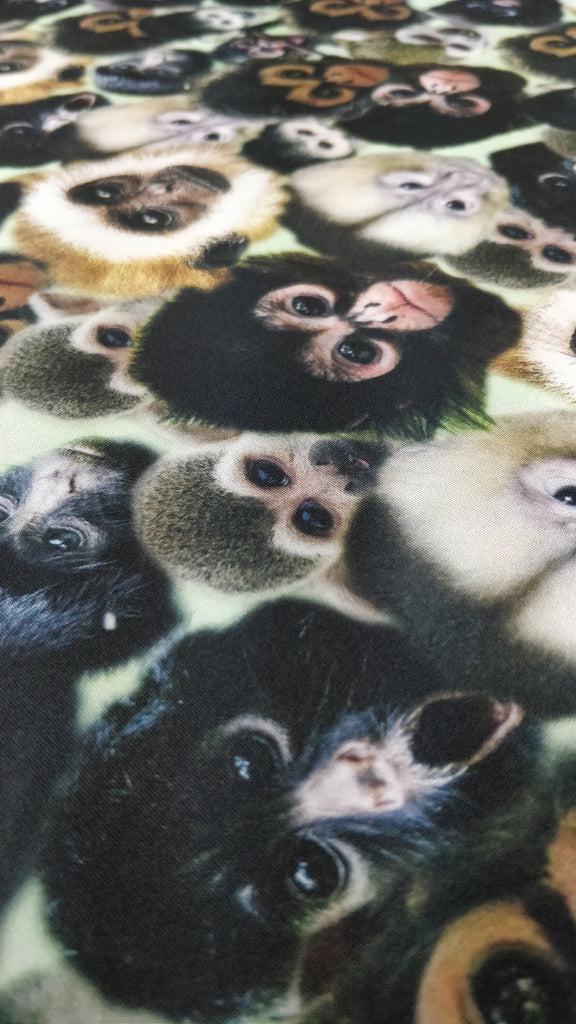 This showcases one of our animal prints collection with the monkey print. These monkey prints have such unique and intricate patterns. Definitely if your a big animal lover you'll fall in love with this particular monkey print as it keeps it plain and simple. This beautiful material is sure to turn head on the red-carpet or at your special event. You can use it for any type of apparel but these are usually fan favorites for individuals making gowns, prom dresses, and gala wear.