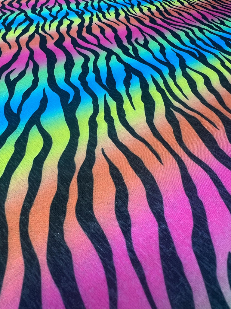 This showcases our beautiful zebra print collection which highlights the unique coating of zebras. This zebra print is on nylon spandex which provides maximum durability and stretchability. These zebra prints come in multiple colors and can be used for any special project that you're working on.