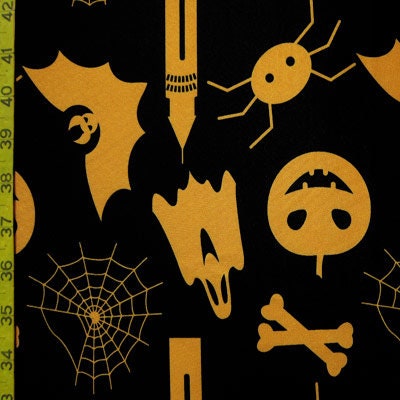 Our halloween collection incorporates staple items when you think of October. This collection shows the different artistic visions and points when you think of Halloween and embodies the spirit of Halloween. This fabric would be perfect for any Halloween event that you plan on utilizing it at. The polyester spandex property allows it for you to get maximum durability and stretchability. This is also a high quality print as well and you won't be disappointed.