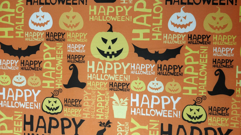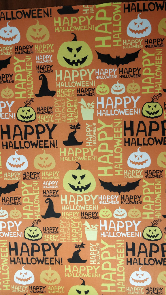 Happy Halloween Print on Poly Spandex Fabric (4 Way Stretch/Per Yard) Happy Halloween Print on Poly Spandex Fabric (4 Way Stretch/Per Yard)