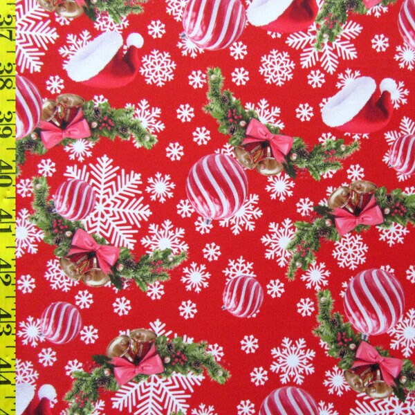 Christmas Bells and Snowflakes Print on Poly Spandex Fabric (4 Way Stretch/Per Yard)