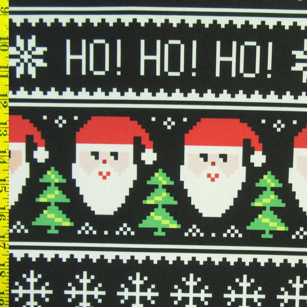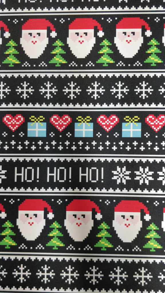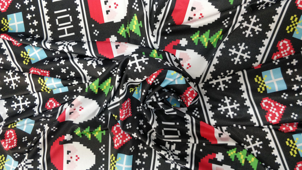Christmas "Pacman Style" Santa Claus Print on Poly Spandex Fabric (4 Way Stretch/Per Yard)