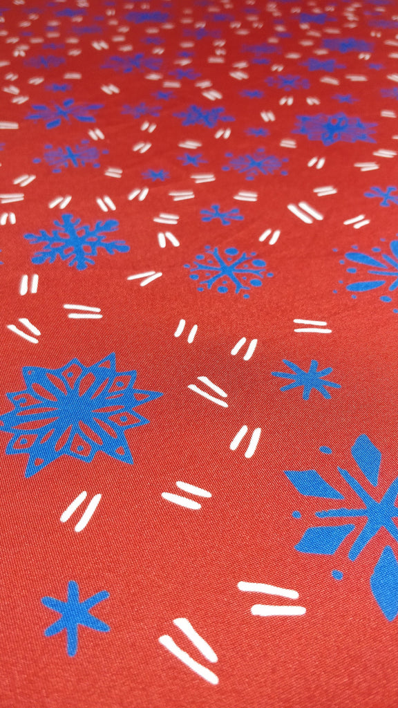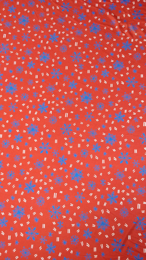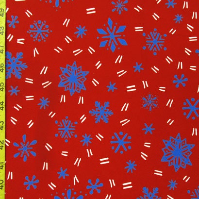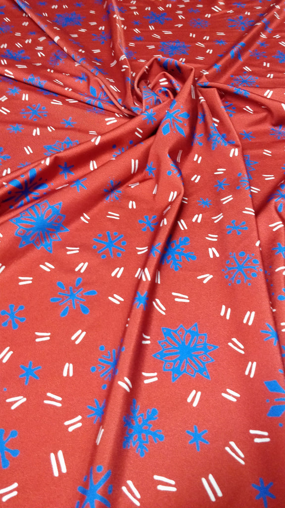 Christmas Snowflakes Print (Royal/Red) on Poly Spandex Fabric (4 Way Stretch/Per Yard)