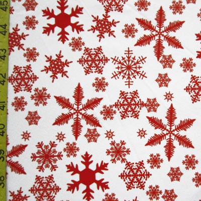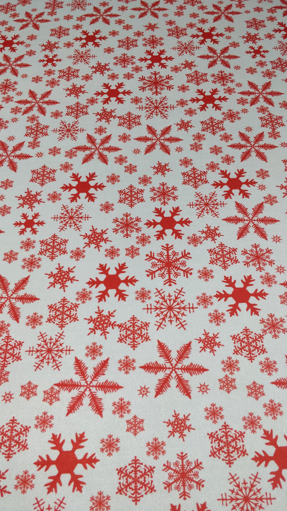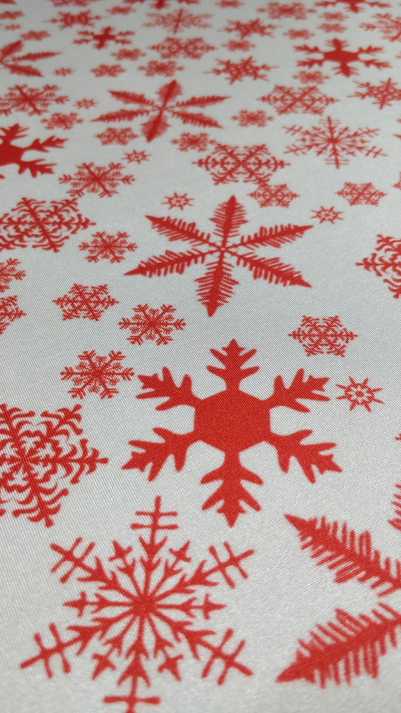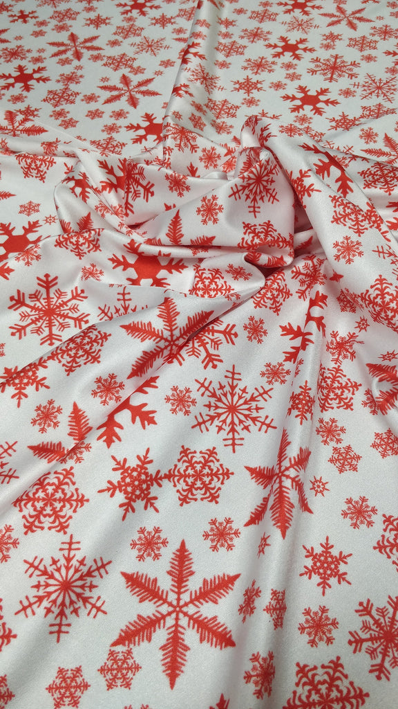 Christmas Snowflakes Print (White/Coral) on Poly Spandex Fabric (4 Way Stretch/Per Yard)
