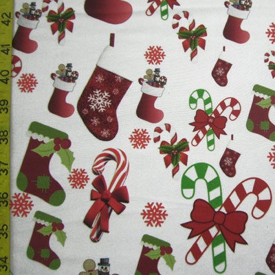 Christmas Stockings Print on Poly Spandex Fabric (4 Way Stretch/Per Yard)