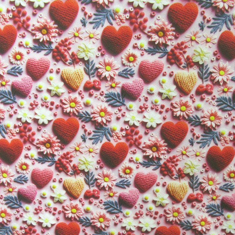 Crochet Hearts Printed on Poly Spandex Fabric (4 Way Stretch / Per Yard)