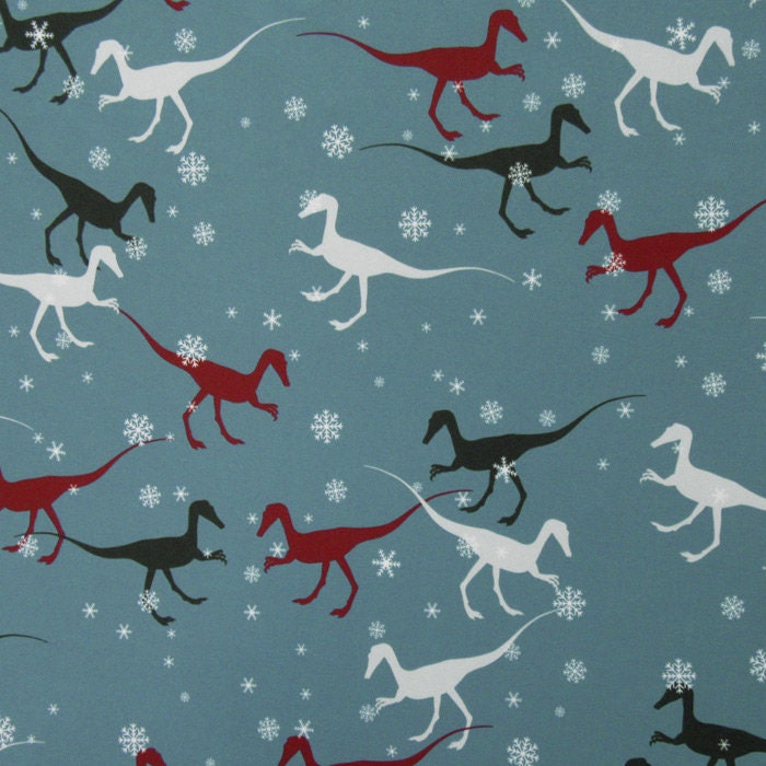 Dinosaurs & Snowflakes Print on Poly Spandex Fabric (4 Way Stretch/Per Yard)