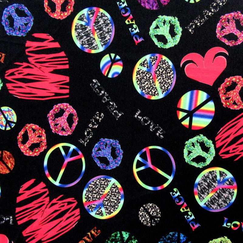 We all want a little love in our life and we mix that together with peace in this combination. The colors combine a wide range of different sets to optimize the diversity in the world. This fabric is a mixture of polyester and spandex to give you that elastic durability that is desired in these type of fabrics. You'll definitely won't be disappointed and we guarantee this is of the highest quality.