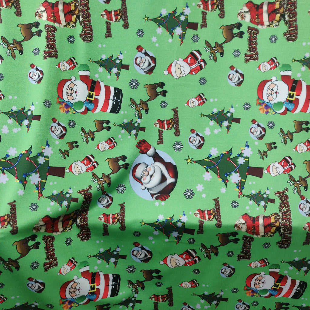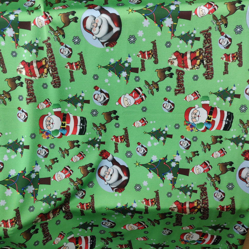 Merry Christmas Print on Poly Spandex Fabric (4 Way Stretch/Per Yard)