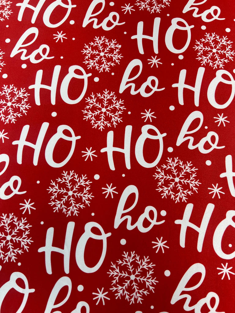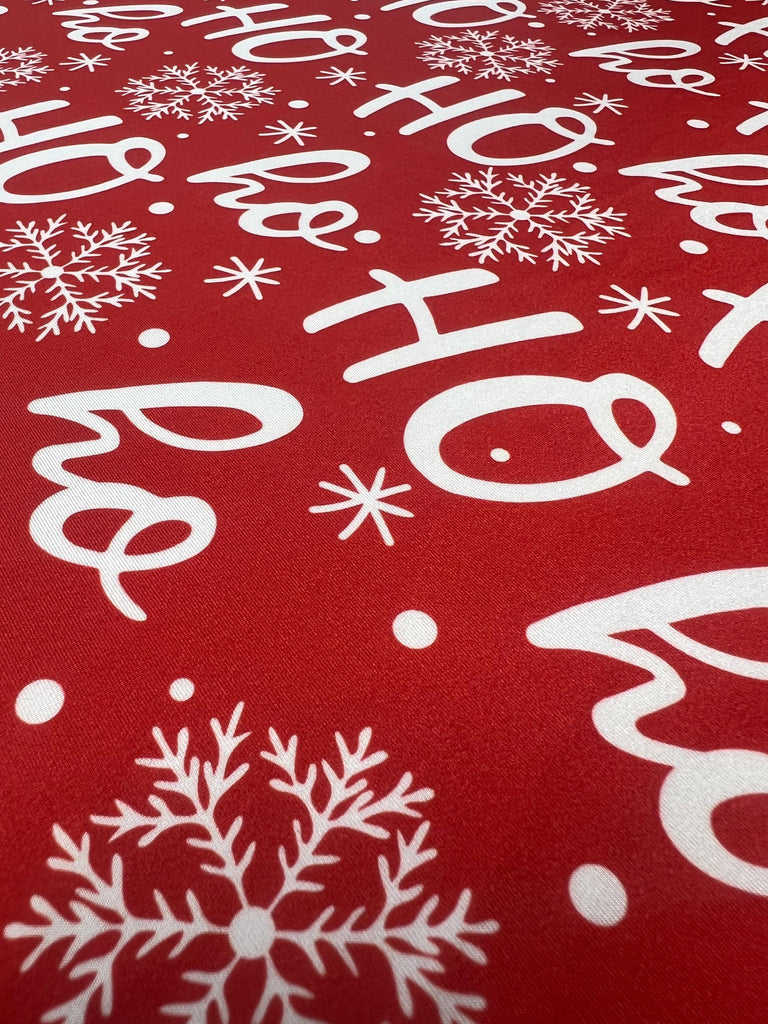 Merry Xmas Ho Ho Ho Print on Poly Spandex Fabric (4 Way Stretch/Per Yard)