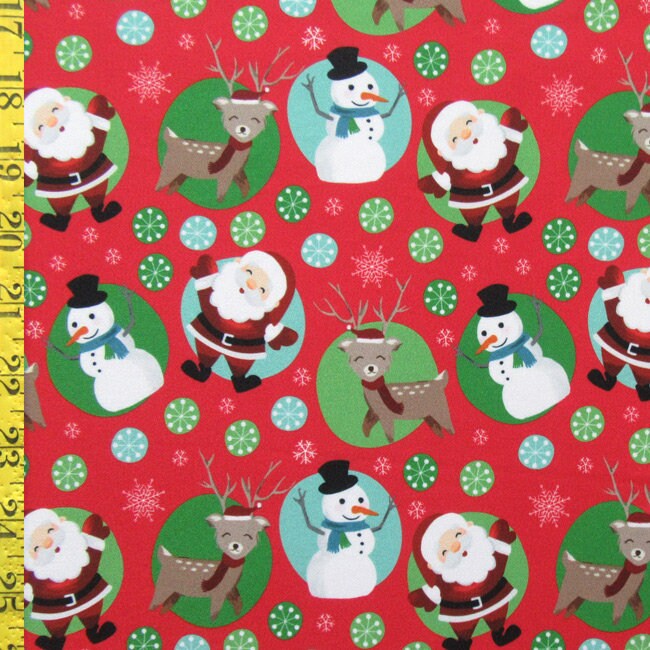 Santa and Snowman Print on Poly Spandex Fabric (4 Way Stretch/Per Yard)