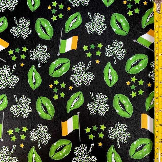 St Patrick Print on Poly Spandex Fabric (Black) (4 Way Stretch/Per Yard) **St Patricks**
