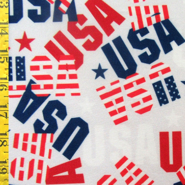 USA Print with Flag and Star on Poly Spandex Fabric (4 Way Stretch/Per Yard)
