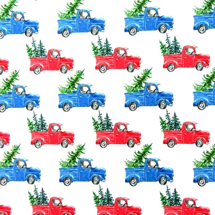 Xmas Trees in a Pickup Truck Print on Poly Spandex Fabric (4 Way Stretch/Per Yard)