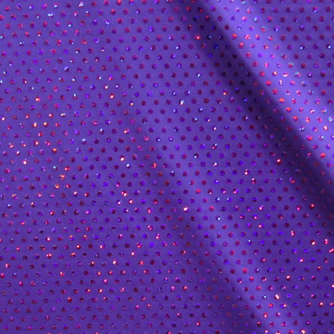 Dots with Holographic Foil Print on Poly Spandex Fabric (Purple/Purple) (2 Way Stretch/Per Yard)