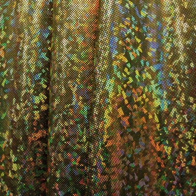 Gold Shattered Glass with Holographic Foil Spandex Fabric (4 Way Stretch/Per Yard)