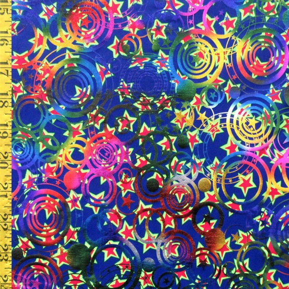 This is a special one off print of our take on a colorful realm of stars world. This print is accompanied with stars on a nice navy blue background. It's a top quality holographic fabric so you won't be disappointed.
