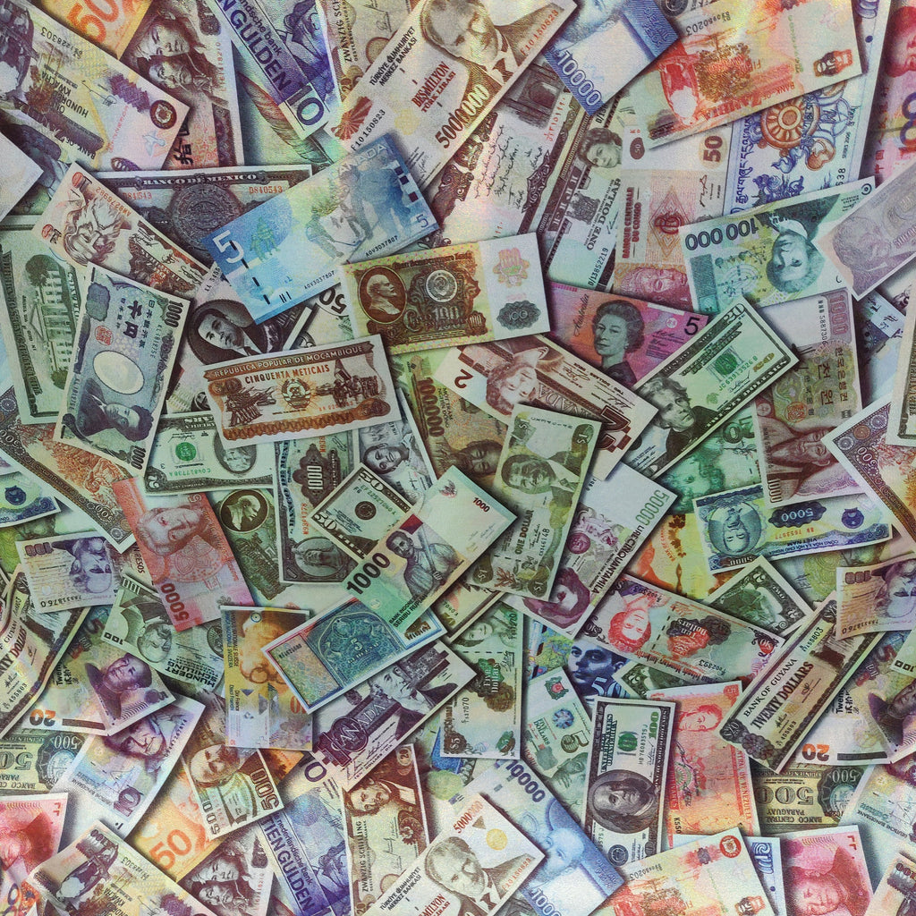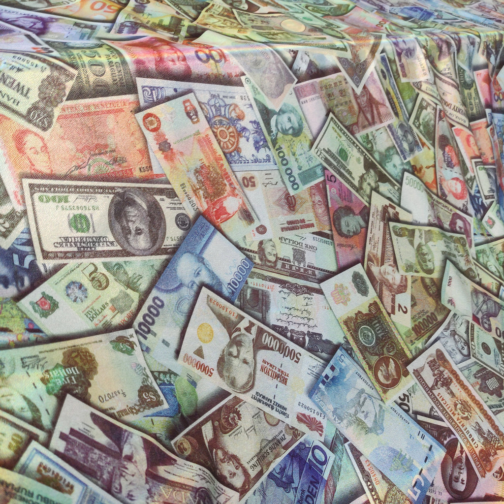 This is a special one off print of our international currency print collection in just a holographic print. It's a combination of some world currencies splayed out on top of each other. Our fabric ...