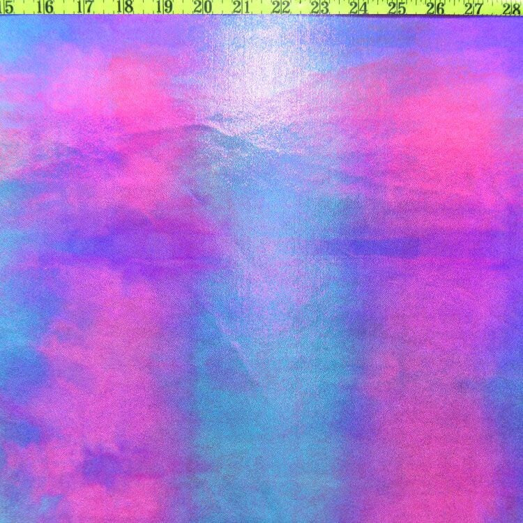 This holographic tie dyed on nylon is a fan favorite and it's stylish appearance makes it fun to work with. The way the light dances on the holographic foil makes it an automatic attention grabber. The shimmer of the fabric depending on the lighting puts a nice spin to whichever color you happen to choose. If your planning on making an item to grab peoples eye this fabric won't let you down. Again it's bright appearance makes this fabric a MUST-HAVE!!