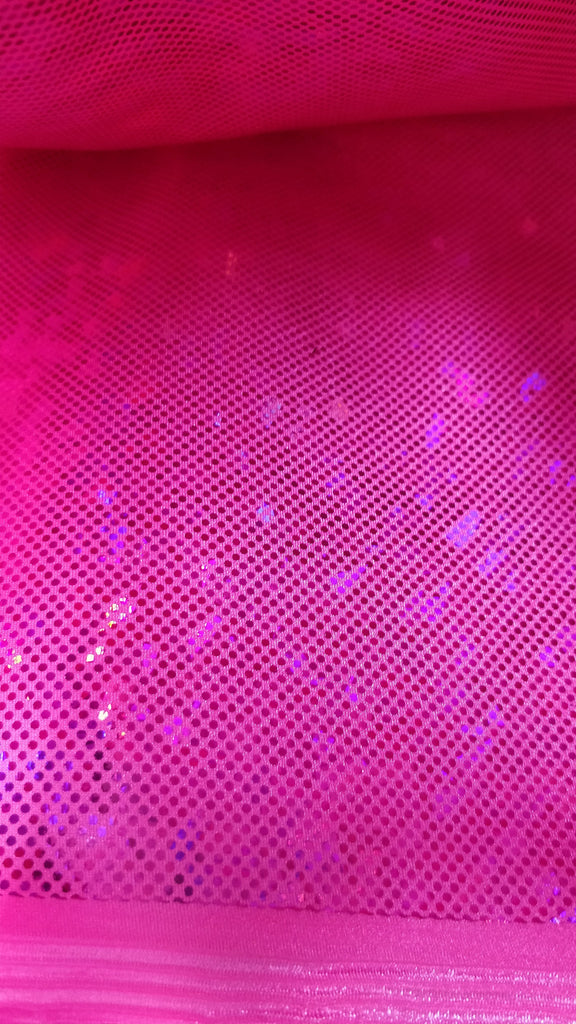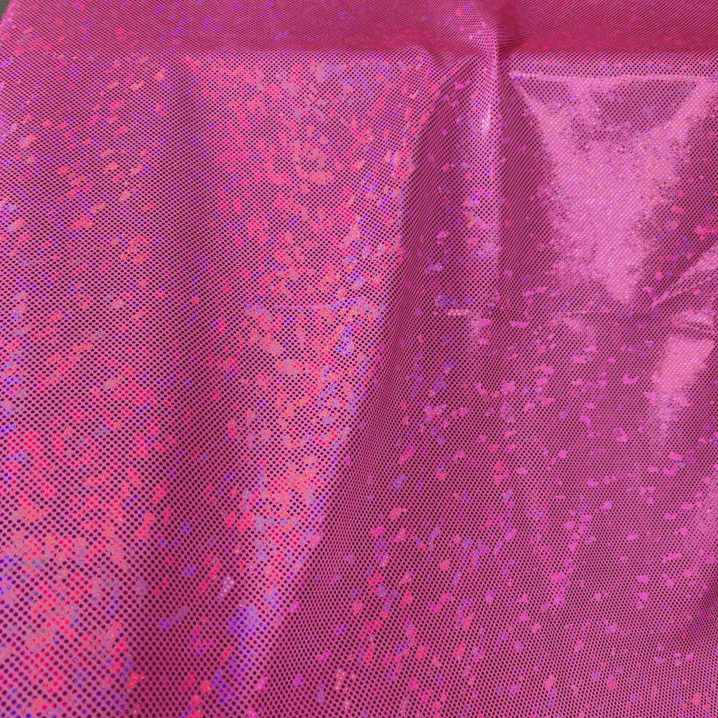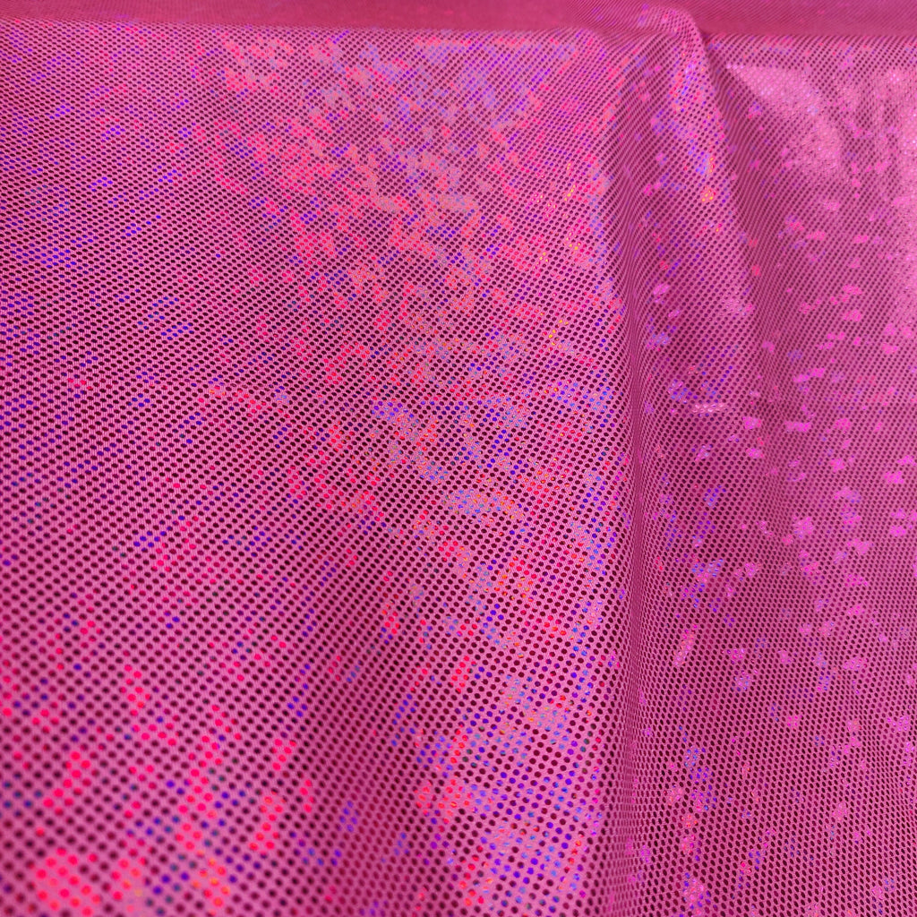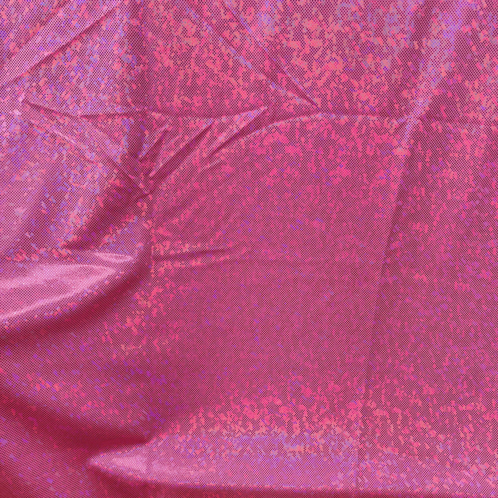 Hot Pink Shattered Glass w/ Holographic Foil Spandex Fabric (4 Way Stretch/Per Yard)