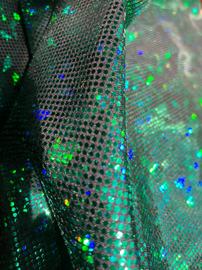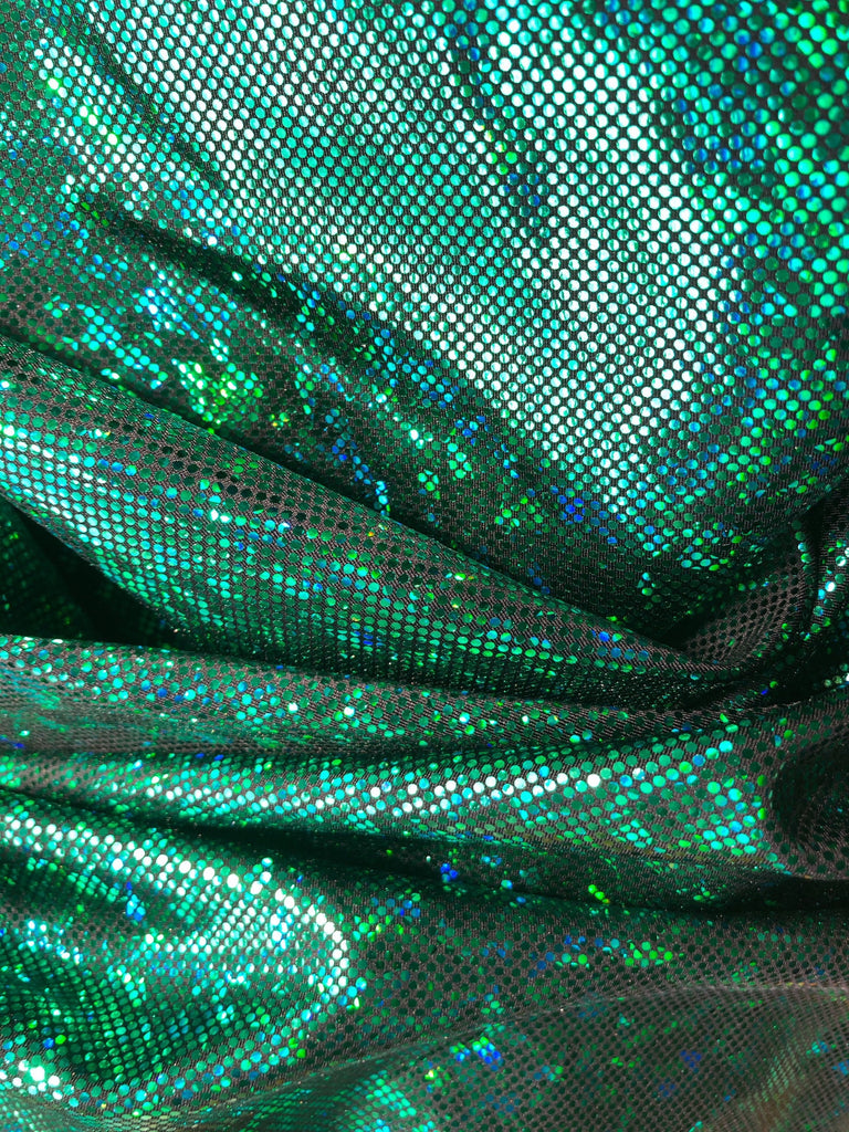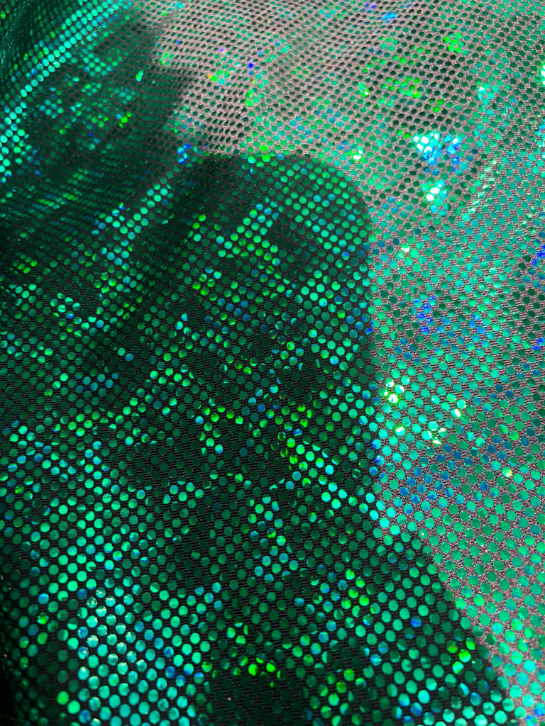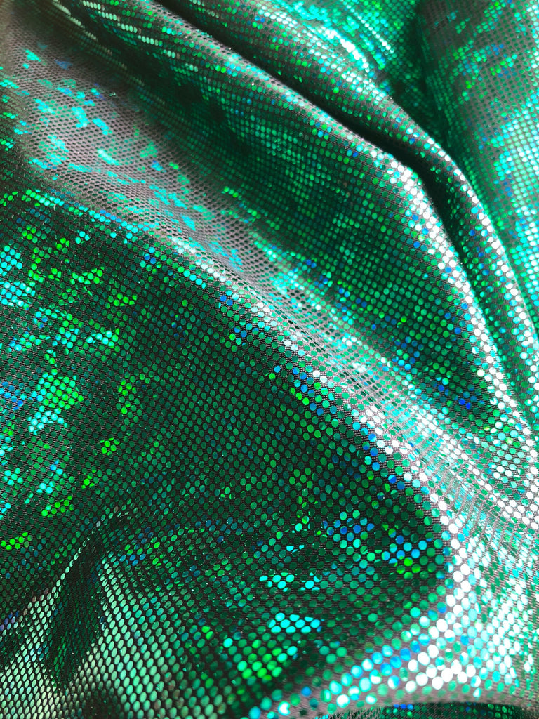 Kelly Green & Black Shattered Glass w/ Holographic Foil Spandex Fabric (4 Way Stretch/Per Yard)