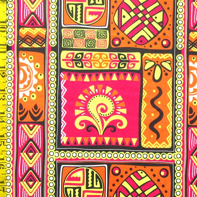 Colorful Abstract Print on Poly Spandex Fabric (Fuchsia/Orange) (4 Way Stretch/By The Yard)