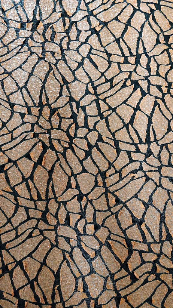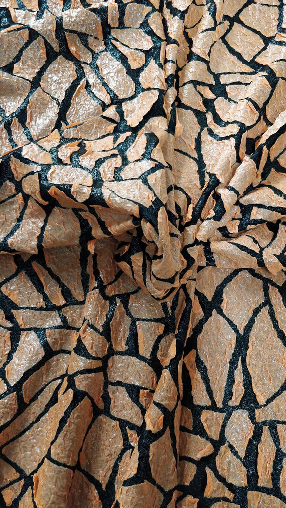 Metallic Foil Abstract Print on Black Poly Spandex Fabric (Neon Orange/Black) (4 Way Stretch/Per Yard)