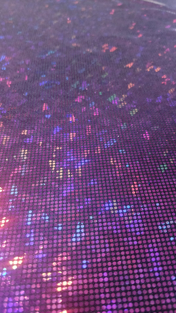 Purple & Black Shattered Glass w/ Holographic Foil Spandex Fabric (4 Way Stretch/Per Yard)