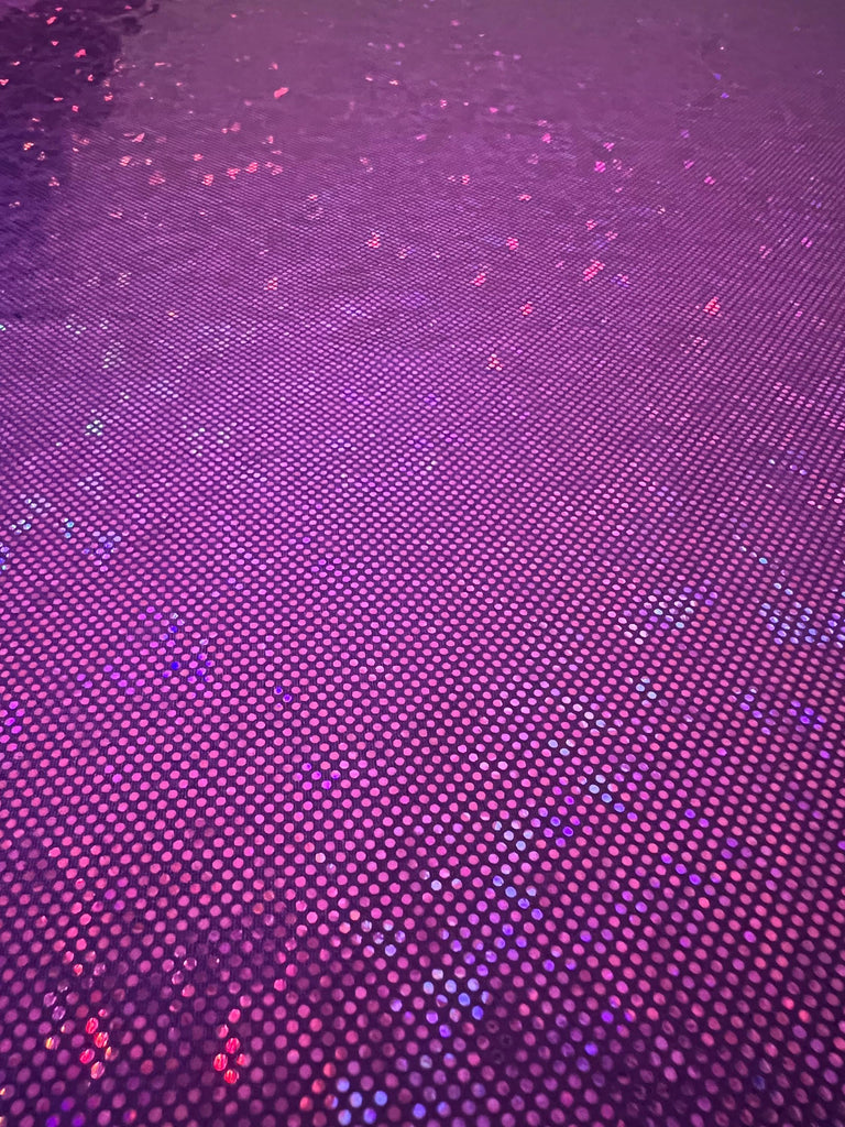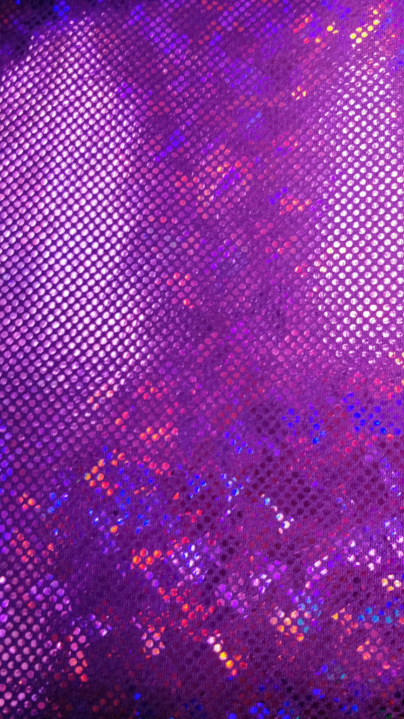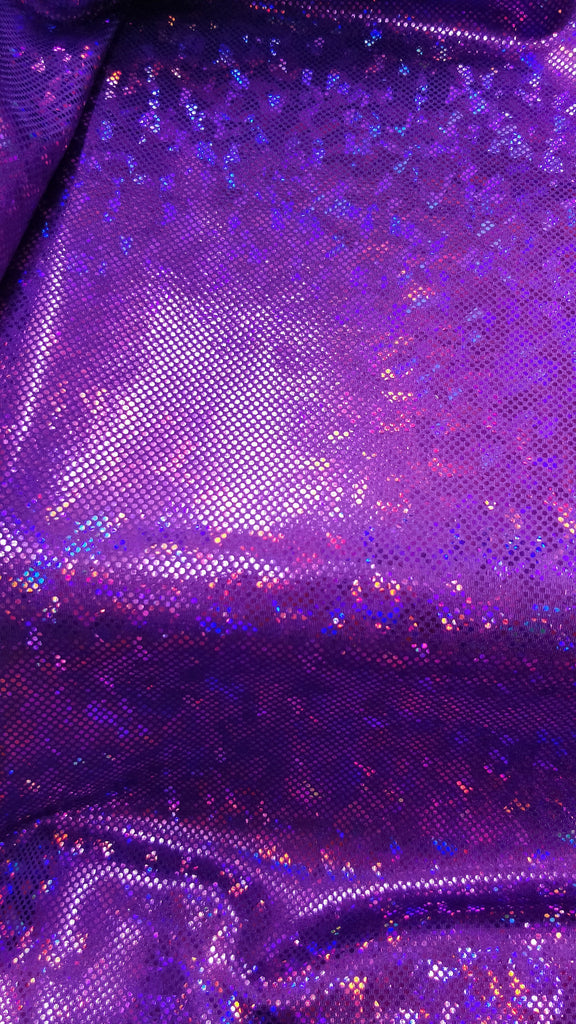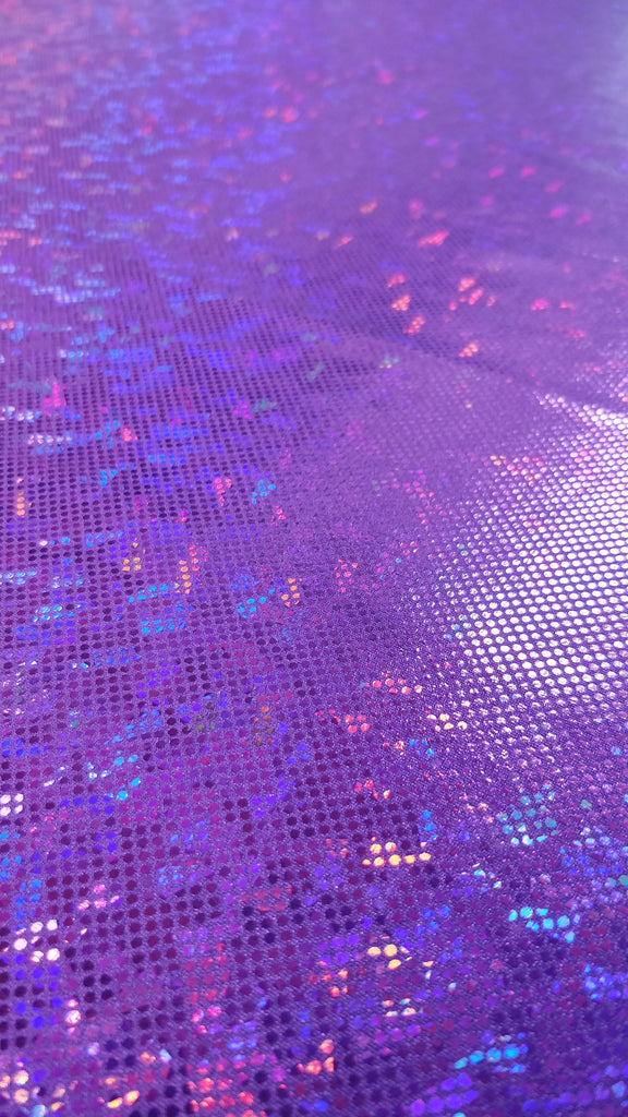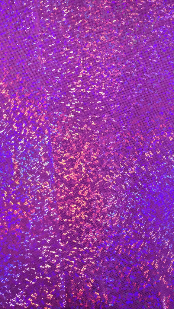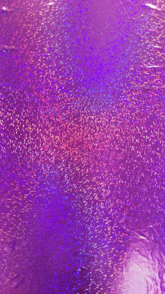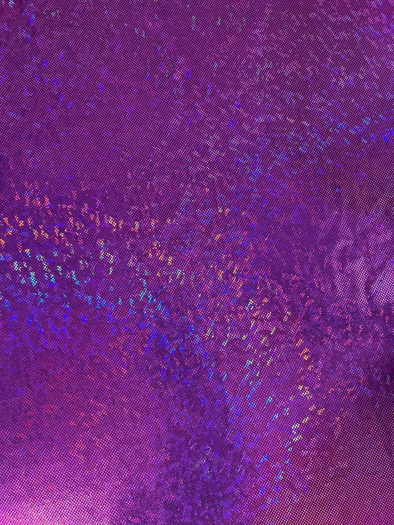 Purple Shattered Glass w/ Holographic Foil on Nylon Spandex Fabric (4 Way Stretch/Per Yard)
