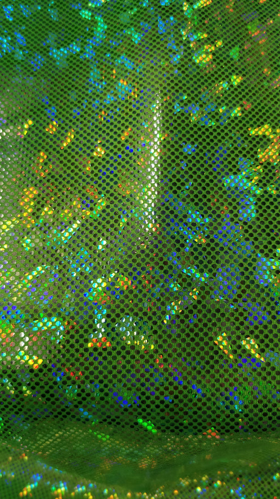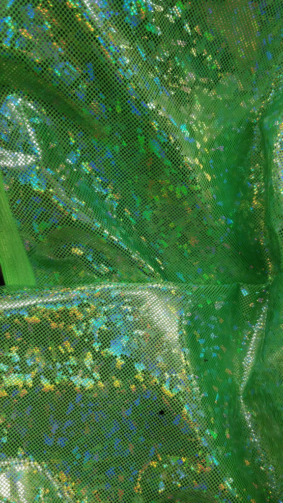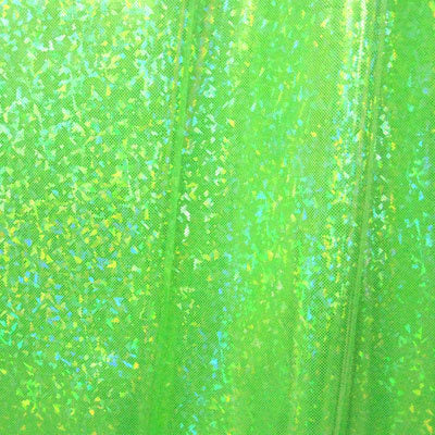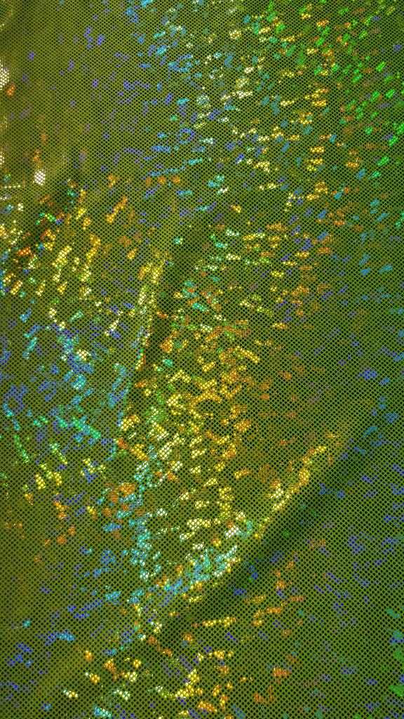 Silver & Neon Green Shattered Glass w/ Holographic Foil Spandex Fabric (4 Way Stretch/Per Yard)