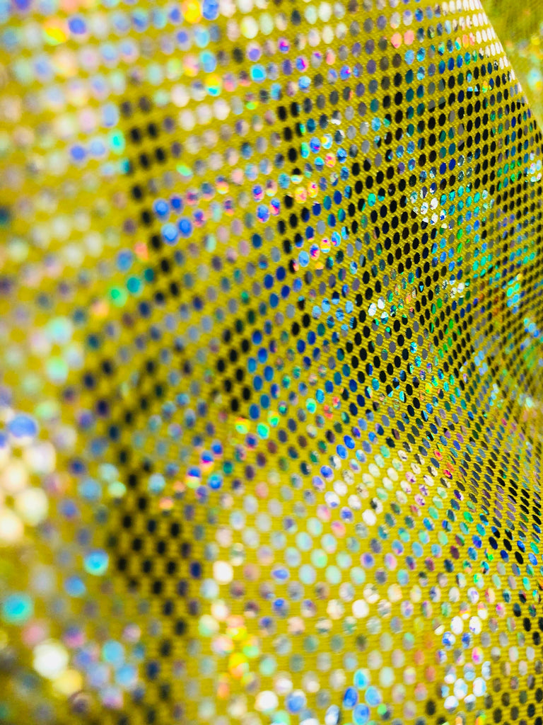 The shattered glass on nylon is a fan favorite and it's stylish appearance makes it fun to work with. The way the light dances on the holographic foil makes it an automatic attention grabber. The shimmer of the fabric depending on the lighting puts a nice spin to whichever color you happen to choose. If your planning on making an item to grab peoples eye this fabric won't let you down. Again it's bright appearance makes this fabric a MUST-HAVE!!