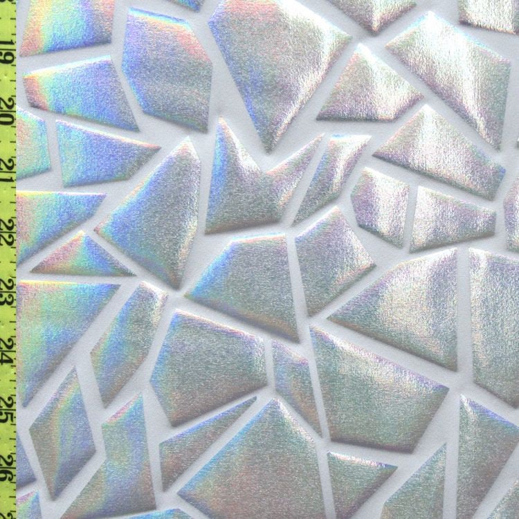 This pattern is a combination of stones and shards of glass if they met. It has metallic foil over it to give it that extra luster and shine. This print comes available in different colors on a nylon spandex background. It has the right amount of stretch for any project your working on, it's a very durable spandex base.