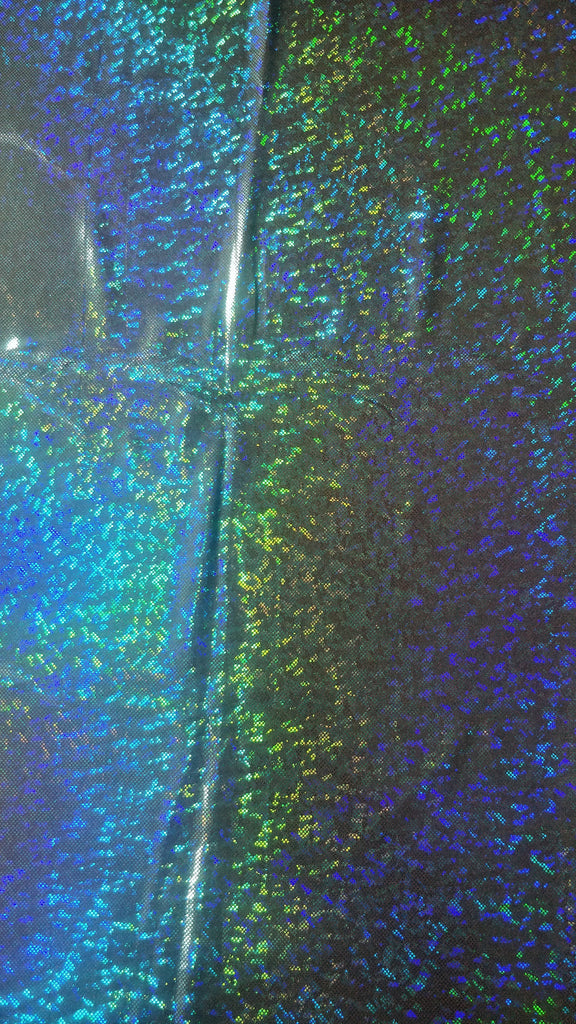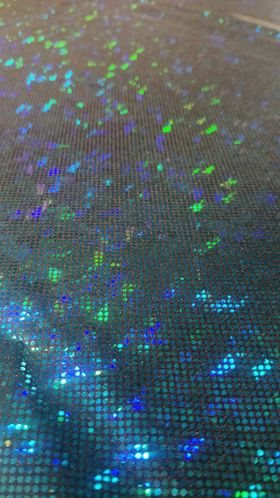 Turquoise & Black Shattered Glass w/ Holographic Foil on Nylon Spandex Fabric (4 Way Stretch/Per Yard)