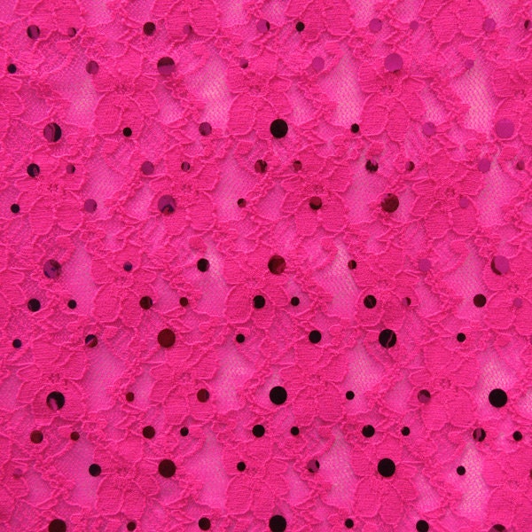 Purple Holographic Sequin on Hot Pink Lace (2 Way Stretch/Per Yard)