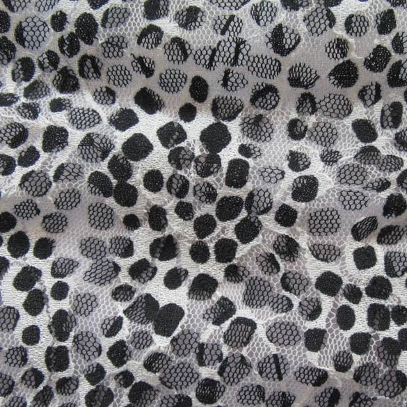 Spotted Printed Lace Fabric (Black/White) (2 Way Stretch/Per Yard)