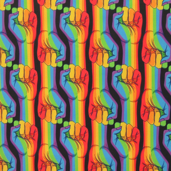 Rainbow Fist of Pride Print on Poly Spandex Fabric (4 Way Stretch/Per Yard)
