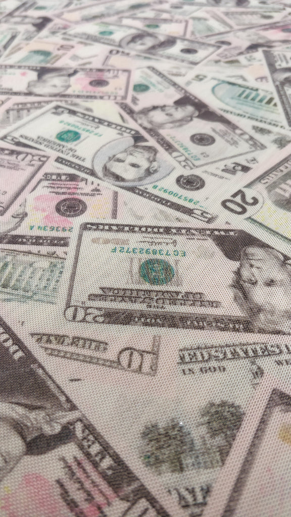 Cash Money on Printed Mesh Fabric (4 Way Stretch/Per Yard)