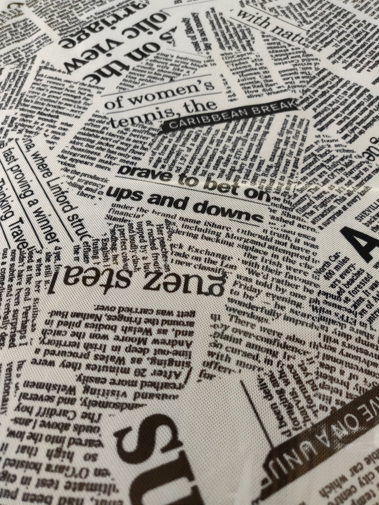 Newspaper Printed on Poly Mesh Fabric (4 Way Stretch/Per Yard)