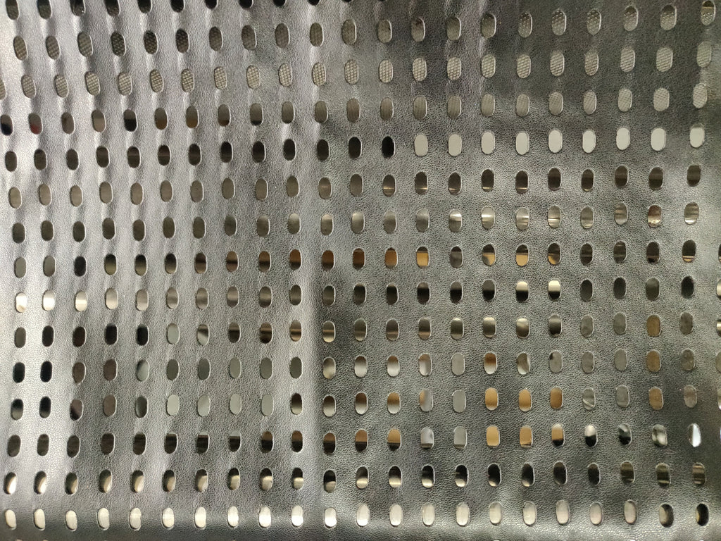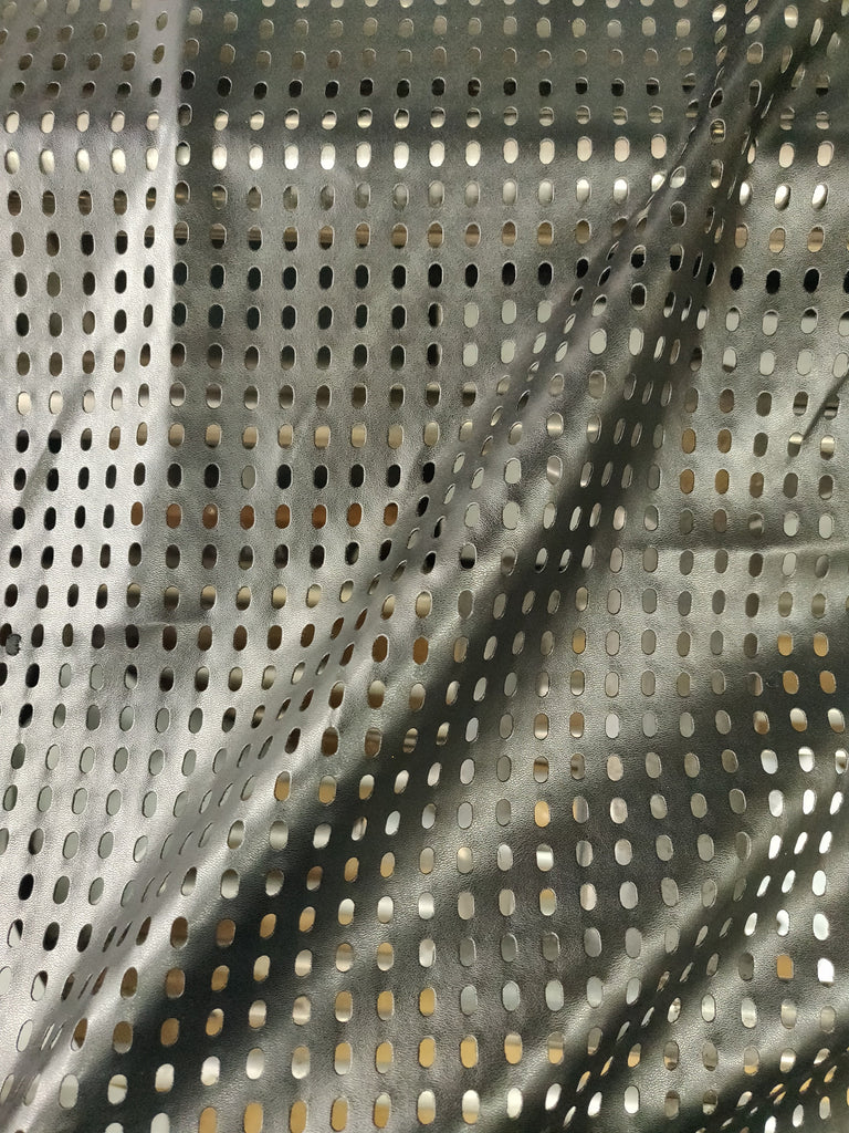 Solid Color Perforated Pleather Fabric w/ PU Coating (Black) (2 Way Stretch/Per Yard)