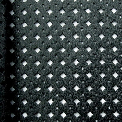 Solid Color Perforated Pleather Fabric w/ PU Coating (Black) (2 Way Stretch/Per Yard)