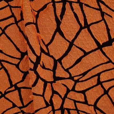 Abstract Print on Black Poly Spandex Fabric (Orange/Black) (4 Way Stretch/Per Yard)