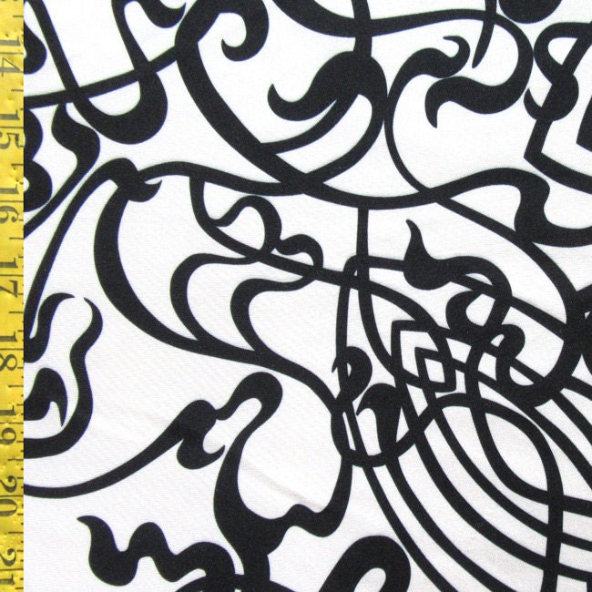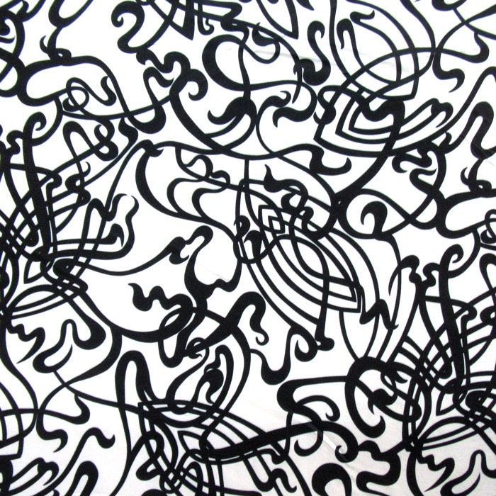Abstract Scribbles of Simplicity Print on Poly Spandex Fabric (4 Way Stretch/Per Yard)