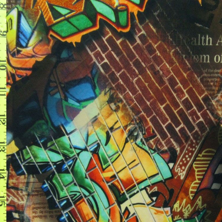 Our cool grungy graffiti section features prints that show a raw and edgy side. A tiny selection of must have and fan favorite prints that we keep as stock for the time being. If you're looking for that special something look no further. These are splayed across a polyester spandex base giving the creator the extra stretch required for any project.