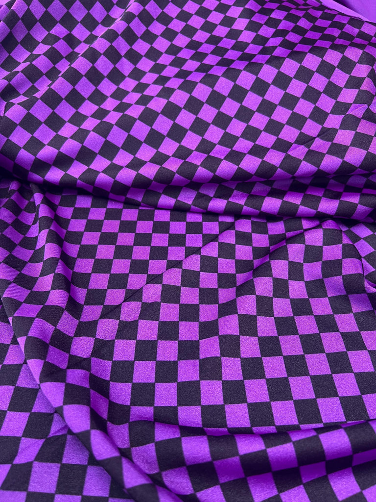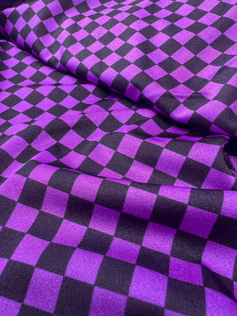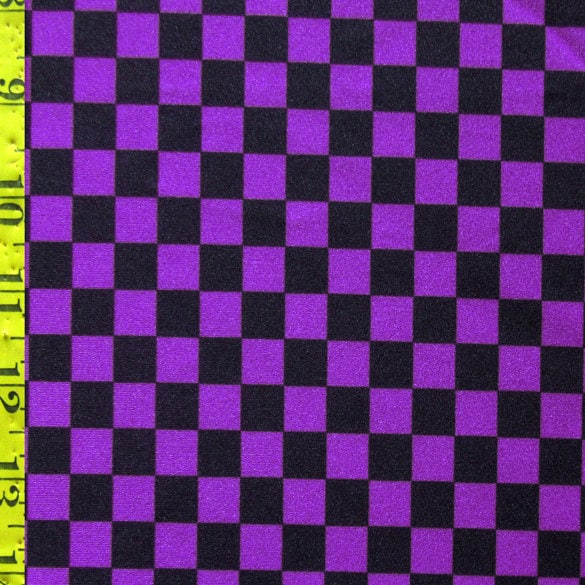 Checkerboard Print on Poly Spandex Fabric (Purple/Black) (4 Way Stretch/Per Yard)